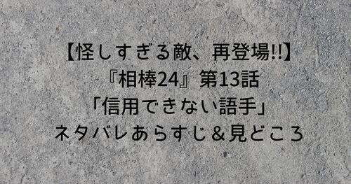 テレ朝の刑事ドラマ『相棒24』。2026年も相変わらずの人気で放送中です。 ここでは、2026年1月14日(水)に放送された『相棒24』第13話「信用できない語手」のネタバレあらすじをまとめています。 見どころも紹介しているので、ぜひ読んでみてください。 『相…